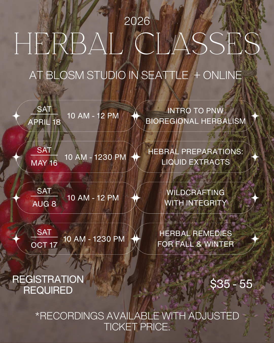 Body + Land connection for our community is at the heart of our business. We seek to create spaces that are accessible and inspiring, bringing together an interdisciplinary approach to wellness that includes herbalism, ecology, and more. We offer in-person classes throughout the year, and host free community nature walks once a season.